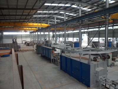 臺車式退火爐鋼 結構主要包括爐殼支撐框架和驅動設備支撐框架(平臺鋼結構)。考慮到爐殼潛在的熱脹冷縮因素,各段爐殼支撐框架與平臺鋼結構采川相互獨立結構。各爐段的底 輥室先安裝就位,以自己四角立柱為基準完成4個基準立柱焊接;再焊接左右兩個整體端板.而操作側和傳..